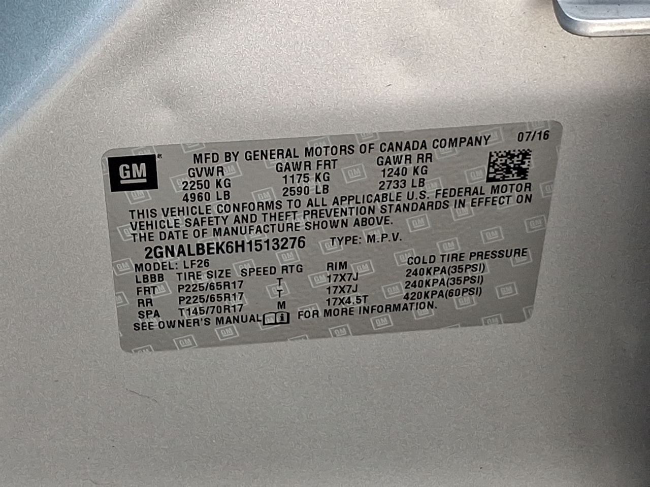 Vehicle Inquiry for 2017 Chevrolet Equinox LS